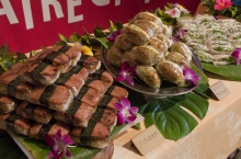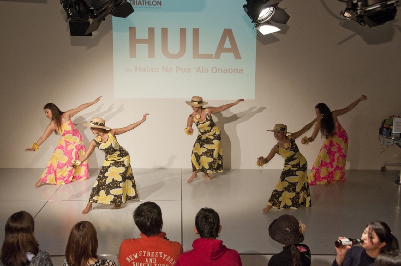 「Aloha! ホノトラに向けて練習も大切ですが、今日は楽しんでいきましょう」。ホノトラの主催者である、白戸太朗・アスロニア代表 /スポーツナビゲーターの開会宣言でホノトラNIGHTは幕を開けた。会場にはホノトラ参加を考えるトライアスロン初心者をはじめ多くの人々が詰めかけた。まず訪れたゲストを迎えたのは、アロハテーブル協力によるハワイアンフードやコナビール、ハワイアンウオーター、レッドブルなどのドリンクの数々。そんなアロハムード満点のおもてなしに始まり、最初のステージHalau Na Pua 'Ala Onaona(ハラウ ナプア アラ オナオナ)によるフラダンスが、心地良いホノルルの風を運んでくる。