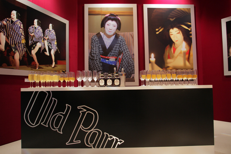 会場であるヒカリエホールに集まったゲストたちは、ウェルカムのオールドパーカクテルを傾けながら、まずは博覧会に展示された写真家・齋藤芳弘が撮影した亀治郎丈の芸術写真をはじめ、浮世絵コレクション、衣装といった展示を、ゆっくりと鑑賞していった。