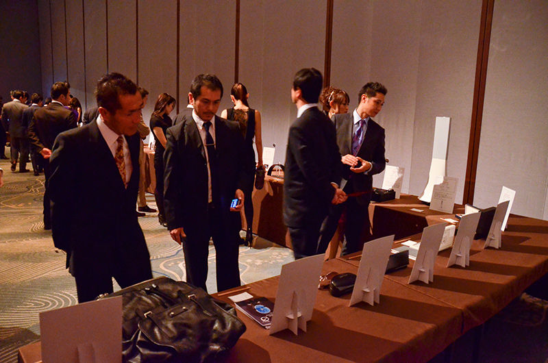 毎年恒例のこのサイレントオークションは、入札希望者がオークションアイテムごとに希望金額を入札シートに記入して提出し、締め切り時点で最高金額を入札した人が希望の品を落札できるという仕組みだ。チャリティも兼ねた本パーティーの趣旨に賛同していただいた企業から提供された品は、前年以上に豪華なものとなっており、多くの出席者が入札金額に頭を悩ませながらオークションテーブルに並んだ品々に見入っていた。