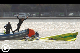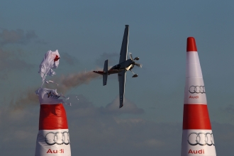 トレーニングセッションでのことだ。ルーキー・パイロットのアジウソン・キンドルマンの乗るMXS-Rがバランスを崩し、海上へと墜落したのである。正式なレースが開催される以前のテスト段階を含めても、エアレース史上初の墜落事故だった。