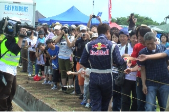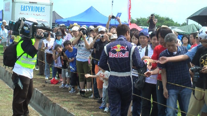 室屋は2日目の午前と午後の2回、エアロバティックスを披露すべく登場。晴れ渡った青空にスモークをたなびかせ、復興への願いを込めてフライトした。10回以上もロールする“室屋ホイール”やおなじみの宙返りにはじまり、ジャイロ系といわれるプロペラのジャイロ効果を利用して、前や後、左右に“でんぐり返し”する上級マニューバをふんだんに披露。室屋のフライトを見に集まった地元の家族連れや子どもを魅了した。この模様はムービーでチェック!