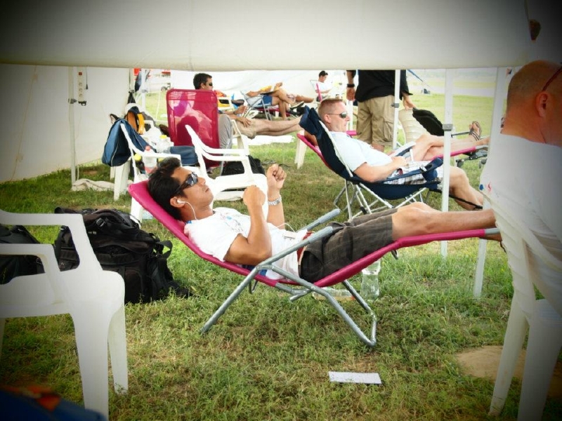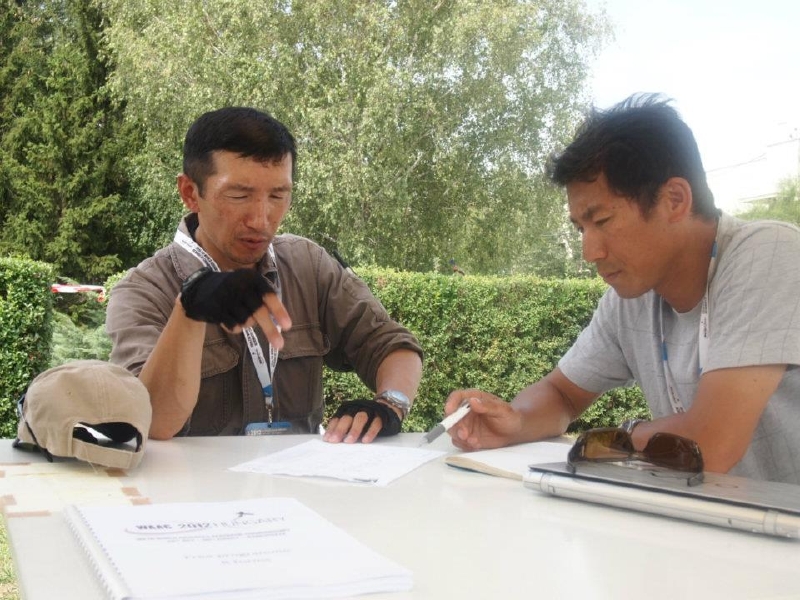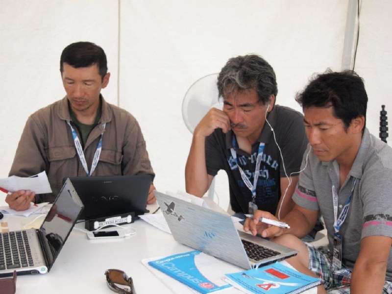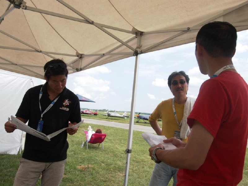 例えば、曲技飛行というのは天候の影響を受けやすいため、競技が途中で中断されることが珍しくない。だが、WAACには、世界から集まった80名もの選手が出場する。全選手が順番にフライトを行うだけでも相当な時間を要するうえに、一度競技が中断されれば、当然、待ち時間は長くなり、場合によっては自分の出番がいつになるのかも分からない。だからといって、競技の様子をずっと見ていては、心身ともに消耗してしまう。実際、自分の出番が回ってこないまま、その日の競技は終了、などということも起こりうるのだ。また、競技当日の朝には、ブリーフィング(競技説明)が行われる。アンノウン(規定、フリーと並ぶ、3種目のうちのひとつ)の場合であれば、そのブリーフィングで各国から一つずつ演技に盛り込む技が発表され、その後、演技構成を考えなくてはいけない。だが、もしも選手自身がブリーフィングに出ていたのでは、フライト順が早ければ、バタバタのまま競技に臨むことになる。これでは事実上、戦えないも同然。少なくとも、勝ちにいくことはできない。