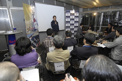 開幕直前の3月中旬に都内で開かれた壮行会の様子。がんばれ室屋!!