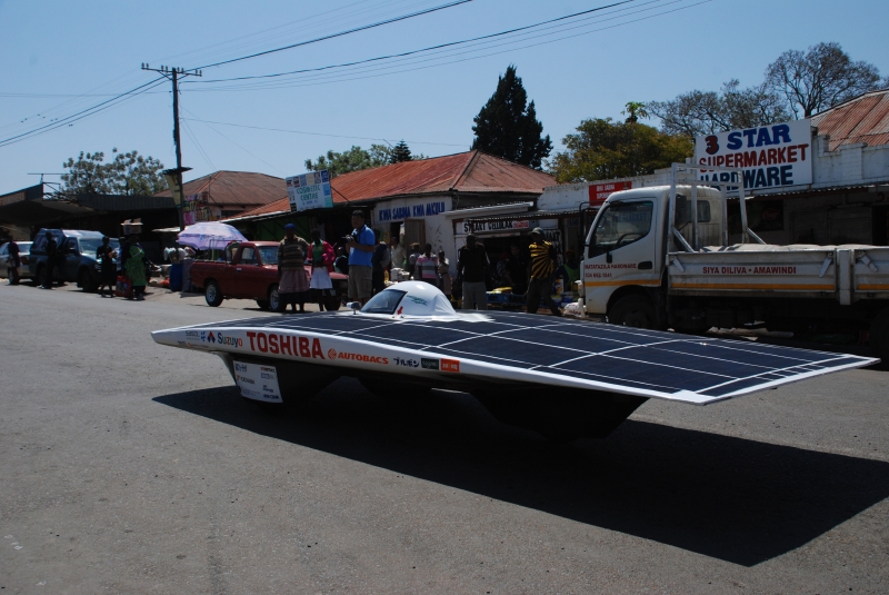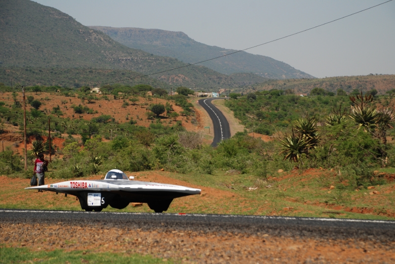 今大会の最大の特徴は、走行距離によって順位を争うというもの。ソーラーパワーの蓄電量や天候といった様々な条件を考慮しながら、いかに長い距離を走り切ることができるかが勝負の鍵となる。11日間の日程で、首都プレトリアをスタートし、反時計回りにコースを進みながら、ケープタウンを通過し、一路東へ。途中ポートエリザベス、イーストロンドンなどを経て再びプレトリアを目指す。1日に平均400~500kmという距離を走行するという過酷なレースだ。参加チームは14チームで、地元の大学チームなどのほか、日本からはチーム篠塚と東海大学の2チームが出場した。