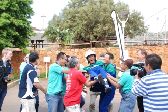 最終日のプレトリアは天候が崩れるとの予報を受け、一時はソーラーカーをトラックに積み込み、目的地を目指すことも覚悟した(トラックに載せての走行は、距離は加算されない)。しかし午後から晴れ間が見え始め、天に後押しされながらひたすら走行。28日、15:30チーム篠塚はプレトリアのフィニッシュラインに到着し、ついに過酷なレースを制した。