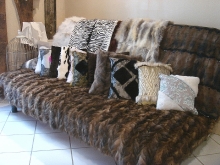 外側がレザー、内側がファーの一枚仕立て1kgコートは、控えめな中に男性らしいたくましさと洗練が感じられます。アイロン要らずの100gストールと共に、人気商品のひとつです。そのほか、ラグマットやベッドカバー、クッションなどのインテリアグッズもサイズに合わせてオーダーが可能。お部屋に天然素材の温もりと肌触りが感じられる、贅沢な時間を約束してくれます。