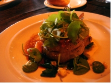 「Conduit(コンディット)」は、2007年の12月にミッション地区のValencia St.(ヴァレンシア通り)と14th St.(14番通り)の角に出来た新しいレストラン。サンフランシスコ中のレストランを食べ尽くしている友人が太鼓判を押すだけあって、サーヴィス、プレゼンテーション、テイストもなかなかのレベル。インテリアはモダンでクリーン。余計なものを省いた潔さがある。それは料理にも反映され、「モダン、ミニマリスト、ストライキング」を売り物にしている。エグゼクティブシェフのJustin Deering(ジャスティン・ディアリング)は、サンフランシスコやナパ・バレーの有名レストランの数々で働いた経験を持ち、オーガニックの素材の持ち味を十分に引き出したプレートを生み出している。特にアペタイザーは見た目も美しく、近代美術のよう。旬の素材を計算し、素直な味で勝負。メインの料理も安心感が漂う。デザートはシンプルでストレート。フレーバフルなアイスクリームを使ったサンディや、ボトルに残ったワインと一緒に楽しめるチーズプレートが人気。ワインの種類もカリフォルニアワインを中心に、オールドワールド、ニューワールドのワイン125種を揃え、グラスでも16種類が楽しめる。キッチンはオープンスタイル。カウンターに座ってシェフのマジックを見ながら、食事を楽しんでみてはどうだろう。