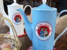またお茶だけでなく、一緒に買い揃えたいのがキッチュで個性的な宋芳オリジナルグッズ。シンボルカラーである鮮やかなターコイズブルーの茶缶には、ちょっとオトボケな農民の絵が描かれています。同じデザインのボーンチャイナカップなどもあり、かわいいだけでなく、上質で使いやすいデザインが大人気です。たっぷりと時間のあるときには、2階に座ってゆっくりお茶はいかがでしょう。マカロンやフィナンシェなどのメニューもあり、中国茶にフランス菓子の組み合わせはやみつきになります。ちなみに、店名の「宋芳」はフローレンスさんの中国名です!もしもショップで彼女に出会ったら「宋坊(ソンファン)さん!」と呼んでみてくださいね!
