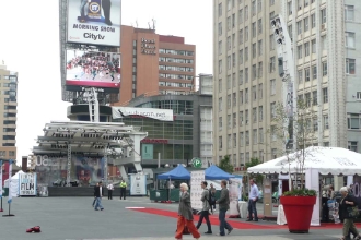 第33回トロント国際映画祭が9月4日から13日までの10日間にわたって開催された。市内各所では無料上映イベントも開催され、街は映画一色に染まった。今年は、ブラッド・ピット、キーラ・ナイトレイ、ベニチオ・デル・トロ、ジェニファー・アニストン、エド・ハリスといったハリウッドスターたちの他、コーエン兄弟など監督、スタッフなどの映画関係者ら総勢500人がトロント入りした。世界64カ国から集まった合計312作品が上映されたが、このうち116本はワールドプレミア。中には休暇をとって、話題作を先取りしたり、まだ世に出ていない隠れた巨匠探しに熱中するという映画祭ファンもいる。チケットの販売は開催前日からスタート。話題作はすぐに完売してしまうが、当日会場前のラッシュラインに並ぶと空席があれば順に入場させてくれる。私は「デトロイト・メタル・シティ」のラッシュラインにトライしたが、残念ながら入場は叶わなかったものの、朝7時からオンライン販売がスタートする当日券を入手し、「アキレスと亀」を見に行った。北米でも大人気の北野武作品は大好評で、終了後には拍手が巻き起こる盛況ぶりだった。33年前、映画をこよなく愛する 3人の男たちが始めた小さな映画イベントは、時を経て世界規模の映画祭へと成長した。しかし、今でも映画祭を支えているのは映画を愛してやまないボランティアたち。上映前には必ずボランティアへの謝辞が伝えらているのが印象的だった。