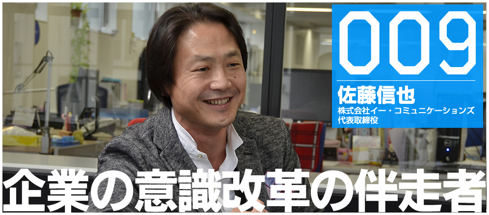 近年目まぐるしく変わる、企業を取り巻く社会環境。そんななか年々声高に必要性が叫ばれる、企業の経営理念やコンプライアンス意識の浸透。そういった、社会に求められる企業の人材価値を高める教育プログラムやソリューションを、インターネットで提供するのが、eラーニングの開拓者、イー・コミュニケーションズだ。代表の佐藤は