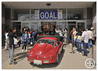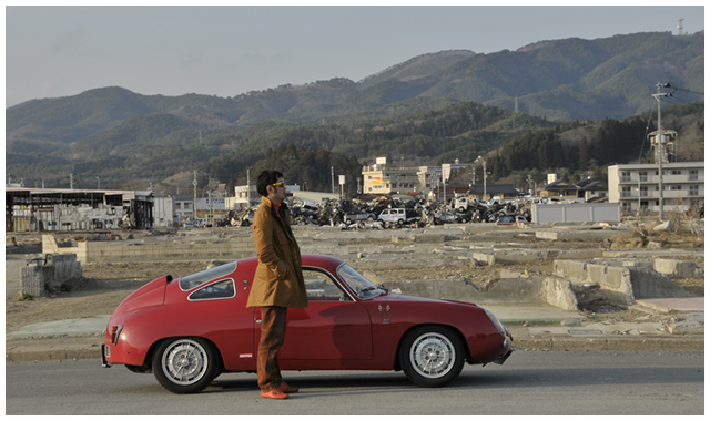 2012年3月、木村は自らが毎年手がけるクラシックカーイベント「ジャパンクラシックオートモービル」を震災復興支援に位置づけ、日本橋から気仙沼まで、愛するフィアット・アバルト750レコルドモンツァ(写真中央)で駆け抜けた。そのゴールの手土産としてイオン気仙沼店に「花魁」を展示した。