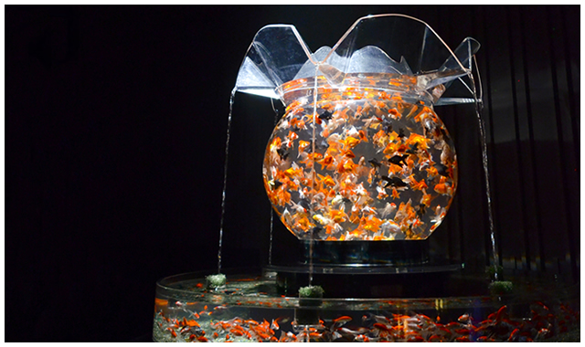 およそ5000匹の金魚が、それぞれのテーマに基づく空間のなかで優雅な舞を披露した。