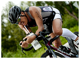 2011年ロタ島でのトライアスロン。バイクパートにて歯を食いしばり疾走する高島。
