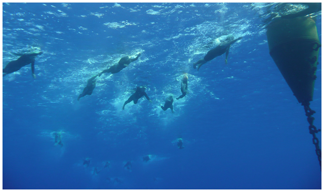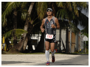 ロタ島でのトライアスロンは、高島のお気に入りの大会の一つ。透明度30mを誇る美しい海を泳ぐ。