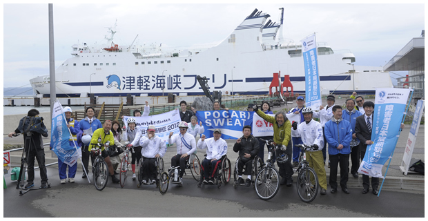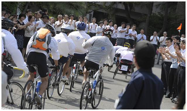 2010年に列島縦断キャンペーン「障害者日本縦断駅伝」として、沖縄から北海道まで27の都道府県、2,300キロをタスキでつないだ。運動器に障害を持つ人たち127人のリレーから、「頑張る、諦めない、手をつなぐ」ことの大切さを訴えかけた。2012年4月に再びスタートしたその「完結編」は、被災地の宮城県をスタート地点に選んだ。