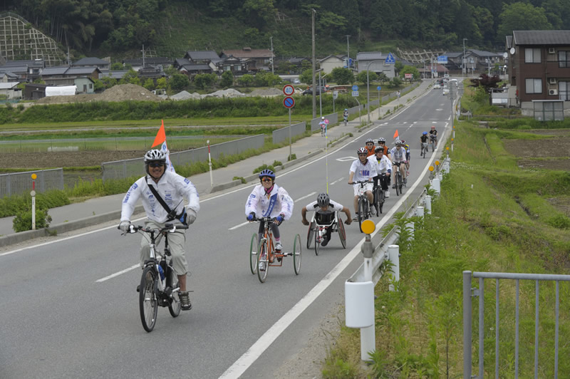 5月14日、新潟・糸魚川にて、長野パラリンピックのスキー選手、音田勉さんが走った。