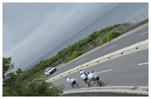 沖縄・本部、東シナ海沿いを走る。もうすぐだ。