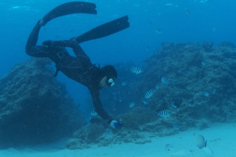 ファンダイブの経験は皆無に等しく、ましてやフリーダイビングと呼ばれる“素もぐり”の経験はない。「自分の肉体にそこまでの自信はない」からと遠慮がちに話す木村は、素もぐりなど考えたこともなかった。