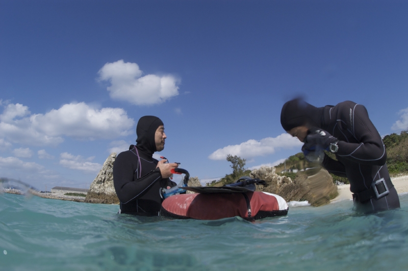 篠宮とのフリーダイビングに備えて、木村とFaustA.G.のスタッフは、前日の午後に沖縄の海を経験していた。篠宮が紹介してくれたダイビングショップのスタッフとともに向かったのが、まさにゴリラチョップというダイビングポイントだった。木村は、寒さに震えながら、沖縄での初めてのファンダイビングを楽しんだのだった。