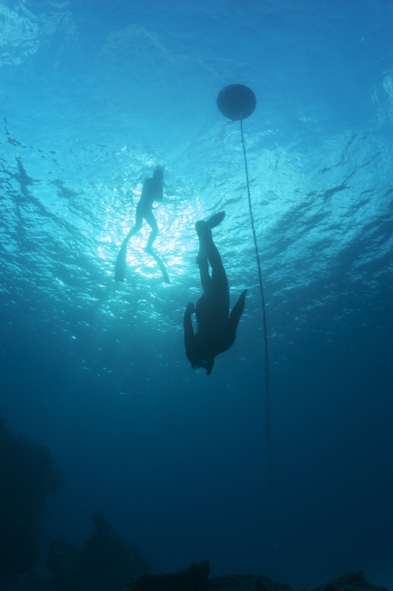 しかし、ガイドロープを手繰っていくフリーダイビングは、垂直に降下していかなければならない。スキューバダイビングのように足を下に向けて、ゆっくりと自分のペースで降下していくわけではない。鼓膜の損傷などのスクイーズのリスクが高いのである。