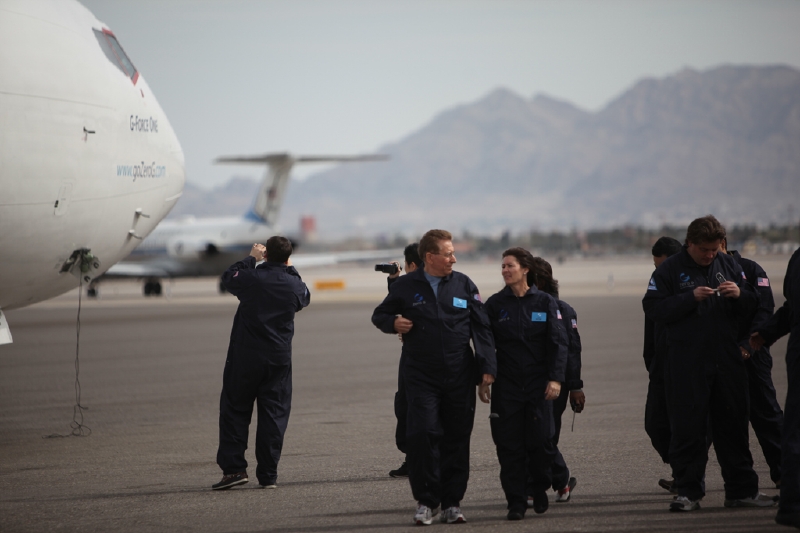 F 無重力から戻るときには、空中から一気に落ちる感じなんです。機体の上のほうにたくさんの人がいて、いきなり重力が加わると、つまり地上と同じ状態に戻ると、みんなが一斉にドスンと落下します。そこで、誰かの下敷きになってしまうことも。僕も一度あったのですが、けっこう重い人が身体の上に落ちてきて、非常に衝撃がありました。なかなか重かったですね。