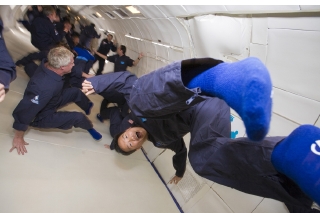 F 無重力状態へ向かう際に、飛行機が上昇していくわけですが、そこではかなりのGがかかるんです。首だけでなく腰とか、身体のあちこちが痛いですね。首とか腰を打ったりしないように、無重力から重力がある状態へ戻る際の落ち方が大切なんだ、ということも分かりました。