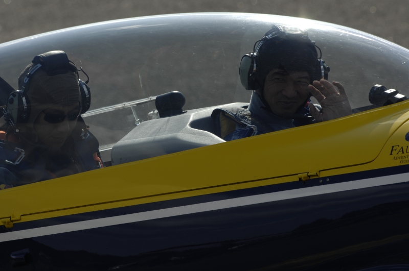 小嶋車とは全然違いますよ。車はカーブの際に横へグッと引っ張られるんですが、曲芸飛行はタテのGもあるでしょう。それって、地上にいる限りは感じられないし、鍛えることができない。身体がフワッと浮く瞬間が、ちょっとだけ怖かったかなあ。それと、車とはシートベルトが違う。イメージしていたよりも、締め付けが緩かった。これはちょっとびっくりしましたね。