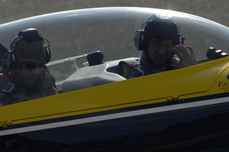 小嶋自家用ジェットぐらいまではありますけど、こういう種類のフライトは初めてです。F1のマシンも運転したことがあるんですが、それよりも凄いですよ。車では到底できない動きを、空の上でやる。しかも、あんなにクイッ、クイッと素早く動くとは……。レーシーングカーと比べると、機体の動き方が尋常じゃない。