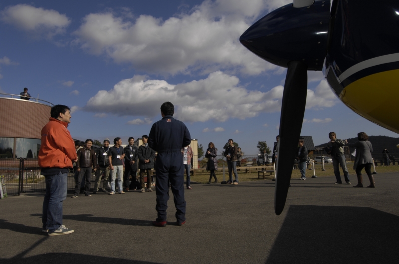 室屋のデモフライトは、会員たちのモチベーションを一気に高めたようだ。ここで芦田博が、タイミング良く前へ進み出る。イベントの開会を告げる挨拶だ。ファウスト・エアロバティックスチーム「unlimited」のキャプテンは、10日ほど前に行なわれた全日本曲技飛行競技会(今年から開催が予定される日本選手権のプレ大会)で、見事に優勝を飾っていた。