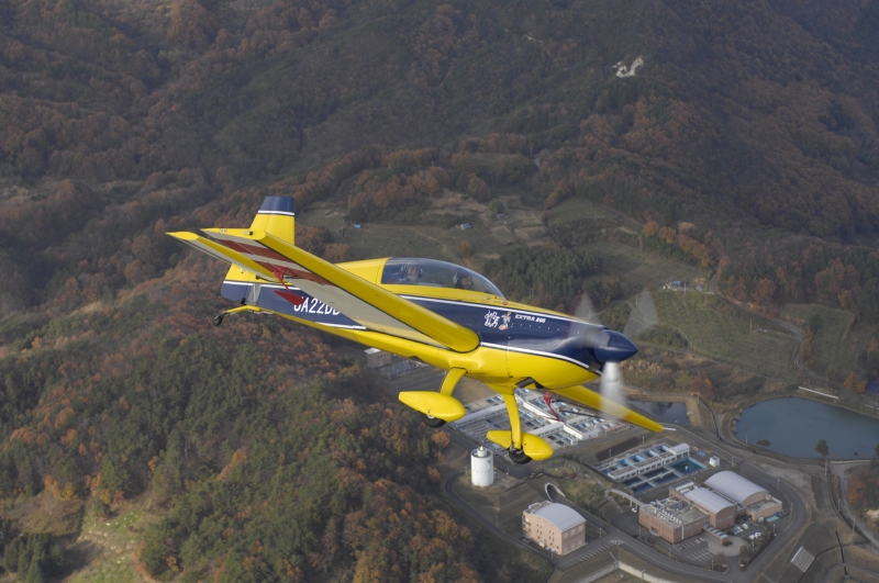 うなりをあげるエンジン音とともに、白石を乗せたエクストラ200が上空へ舞い上がっていく。