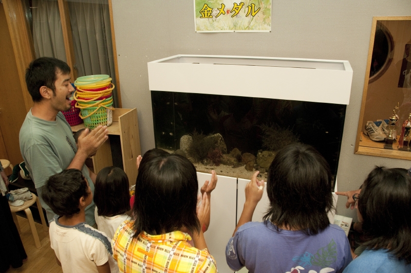 M:今回「窓愛園」の子どもたちにアクアリウムをプレゼントすることになりました。熱帯魚も一緒にプレゼントする…という方法ではなく、敢えて、実際に魚を取りに行った理由はなんですか。