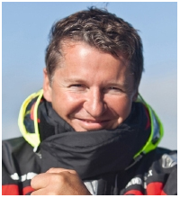 1962年9月19日生まれ、フランス出身。海洋冒険家。風力のみで海上を高速で航行する“セイルクラフト”「イドロプテール号」を開発、自らキャプテンとして冒険を続けている。「イドロプテール号」は、水中翼を擁する三胴船のヨット。水中翼による揚力で船体が持ち上がり、海面を文字通り飛ぶように高速航行する。 |