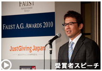 「このたびはありがとうございます。この賞はジャスト・ギビング・ジャパンのスタッフの皆さん、サイトに参加してくれた人、チャリティに協力してくれた人を代表していただいたものと受けとめています。チャリティや寄付といったことに対して、新しい風を吹かせていけたらと思います」