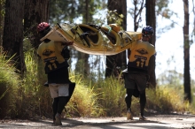 最も早い移動手段が“マウンテンバイク”。仲間を引っ張る牽引棒などが用意され、体力のある選手がない選手を牽引するシーンもこの種目でよく見かける。オンロードだけでなく悪路としか言いようのないオフロードや、さらにはマウンテンバイクを担ぎながら移動するシーンはこのレースならではかもしれない。