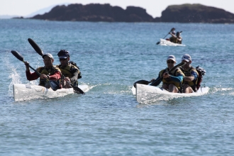 日本では川を使ったラフティングを取り入れるレースも多いが、世界的には湖や海などを舞台に“カヌーやシーカヤック”を取り入れることが多い。ラフティングは主催者が用意するのが一般的だが、カヌーやシーカヤックの場合、チームで用意することが多い。