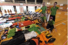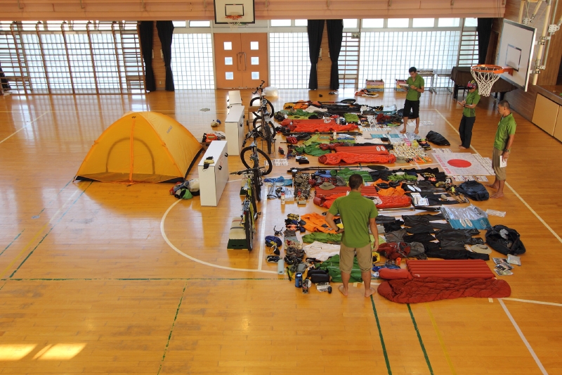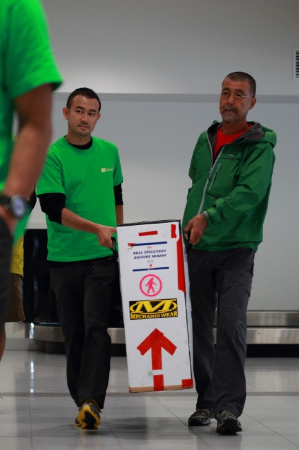 10月16日、出発を11日後(27日)に控えたリアルディスカバリーのメンバーは千葉にある浦安体育館を借りて、装備のチェックを行っていた。仕事で遅れると連絡があった小澤の分は南が車に積んで持ってきていた。広い体育館に並べられた装備品の数々。さすがに10日間ともなるとその量も半端ではない。このためにサポートを受けたモンベルはじめ、新調したウェア、ギアの数々。食料は持ち込むものと現地に直送するものとに分けた。航空機でのオーバーチャージを考慮し、できるだけ日本から持ち込む量を減らす作戦だ。