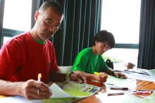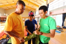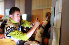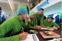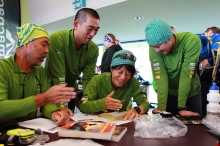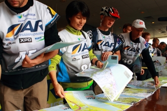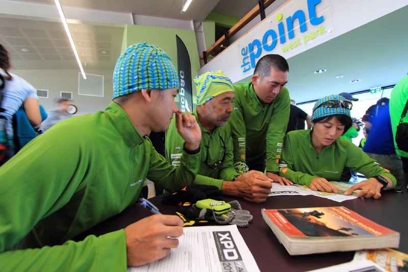 登録が済むと、次はチームのスキルチェックとして、ナビゲーション(※詳しくはコチラ)とファーストエイドに関するペーパーテストに選手たちは取り組まなければならない。コンパスや地図の扱いや道に迷った時、蛇にかまれた場合や低体温症など、緊急事態を想定した対処法のテストだった。90ものチームが埋め尽くし、賑やかな会場。リアルディスカバリーのメンバーはどこか緊張しつつもその雰囲気を楽しんでいた。