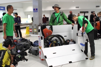 29日、リアルディスカバリーはオーストラリアのメルボルン空港を経て、タスマニア、ローセストン空港へ降り立った。この日は出場する多くのチームが現地入りする日でもあった。そのため荷物を受け取る場所には、メディアが出場チームのコメントをとろうと待ち構えていた。13時間に及ぶフライト後でありながら、現地入りしてテンションの高まるリアルディスカバリーは、着いて早々、大会主催者側によるインタビューのため集められた。キャプテンである南は、英語の質問にちょっと緊張しながらも丁寧に答えていく。「4ヶ月の準備期間しかありませんでしたが、ここまできた。あとはチーム一丸となりゴールを目指すのみ」と意気込みを話った。