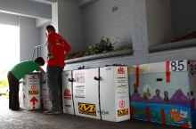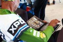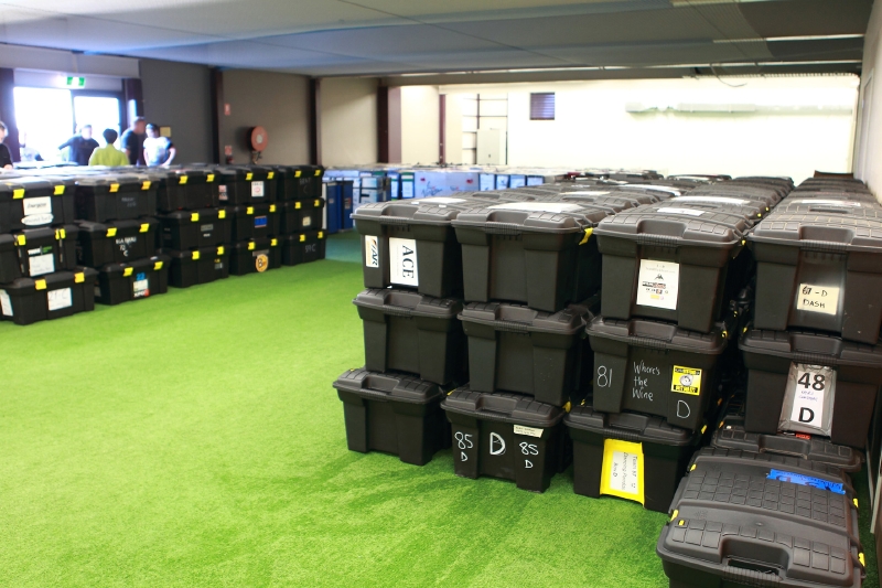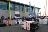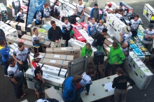 大会本部には大量のトランクやバイクボックスが集まってきていた。トランクはどのチームも同じものなので、ロングレースに慣れているチームは探すことのないように色分けしたり、ステッカーを貼るなどして工夫されていた。全てのチームの荷物がチェックされるため、ここでかなり時間を要することになった。ただ荷物を出してしまえば、あとはチーム内での作戦会議に集中できる。