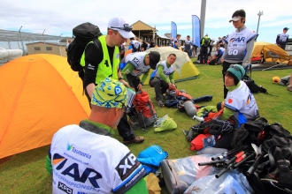 主催者の挨拶を終えたあと、選手たちはメディカルチェックと装備チェックを行う。会場には選手たちのたくさんのテントが並び始めた。大会スタッフに呼ばれたチームは自分たちのテントと必須装備を見せ、チェック。リアルディスカバリーも問題なくクリアした。