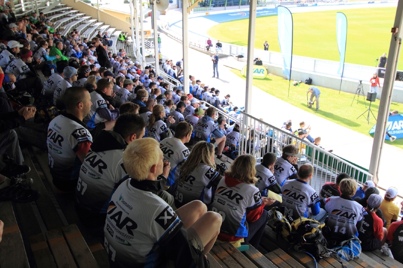 バーニーの街で一番大きな競技場を貸し切り、続いて、ウェルカムブリーフィングが開催された。国内のアドベンチャーレースに何度も出場しているメンバーだが、これほど多くのチームを見たことがない。しかし、この時点でもコースは発表されない。スタート24時間前に発表されるのがXPDのスタイルなのだ。