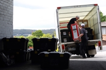 そんな中、空港のターンテーブルが動きだし、大きな荷物が続々と流れてきた。荷物のサイズも量も半端ではない。いつもならこのターンテーブルの上を、麻薬犬ならぬ、生ものの持ち込みがないかチェックする荷物検査犬がかぎ回るのだが、この日は姿がなかったようだ。