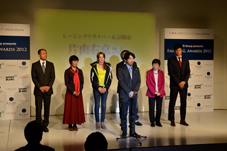 最後に、ファウストA.G.アワード2012の特別審査員であり、受賞者へのプレゼンターも務めていただいた片山右京氏が登壇。「これだけ時代が加速して過ぎていくなかで、冒険の求められるハードルは高くなっている。クリエイティビティが求められたり、世の中の常識と戦ったりしなければならない。彼らがトライする冒険によって勇気をもらえていることに、お礼を言いたい」と総評を述べ、各受賞者への謝意という形で彼らの活動をあらためて称えた。