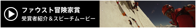 受賞理由となった各氏の活動を紹介する映像によって、各賞受賞者が発表。取材カメラのシャッター音が響き渡るなか、ファウスト冒険家賞の谷口けい、平出和也両氏、ファウスト挑戦者賞のローラ・デッカー氏、ファウスト社会貢献活動賞の風間深志氏、ファウスト特別賞の田部井淳子氏、JustGiving特別賞の都倉賢氏(受賞団体であるJPFA日本プロサッカー選手会を代表して出席)が、順に登壇した。受賞のスピーチでは、それぞれが受賞に際しての感謝や驚きといった様々な思いを言葉で表わすとともに、今後の夢や目標についても熱く語った。