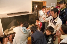 昨年夏、六本木ヒルズで開催された「東京アクアリオ2010」において、ファウストの社会貢献プロジェクトチームキャプテンの糸見バーリン黎と、アクアリストの木村英智が中心となって、土浦にある児童養護施設「窓愛園」の子どもたちにアクアリウムをプレゼントした。そのアクアリウムには、昨年の秋、子どもたちと共に同じ鴨川の海で救い出した熱帯魚たちを放し、子どもたちが大切に育てていた。