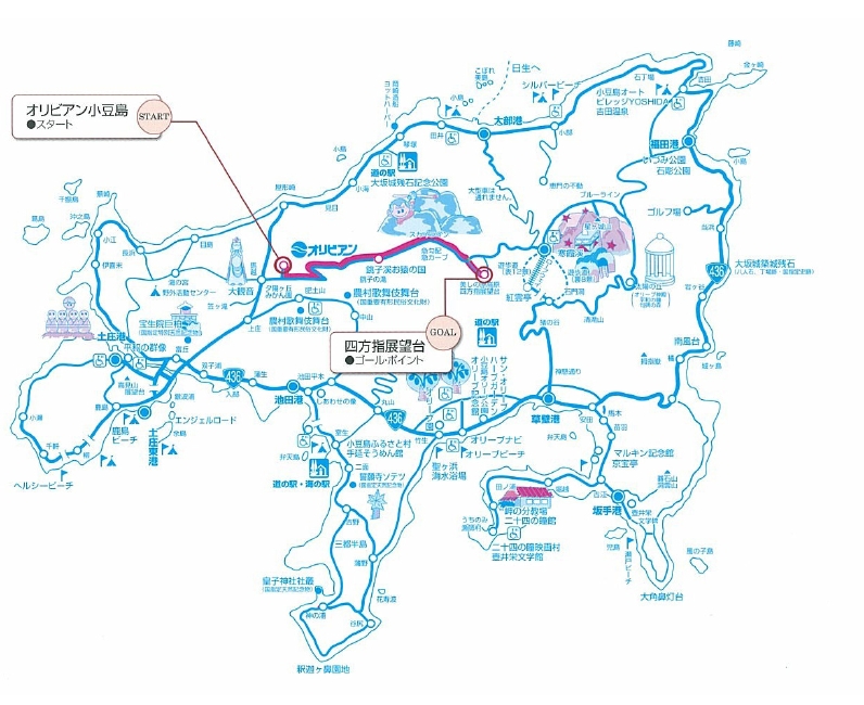 小豆島の夜が明けて、大会2日目。最終日となる2ndステージは、スタート地点のリゾートホテル・オリビアン小豆島から、名勝・寒霞渓へと続く、美しの原高原・四方指展望台をゴールとするルートでヒルクライムラリーが行われる。