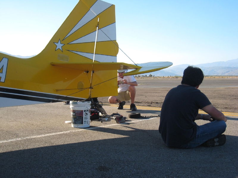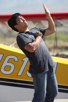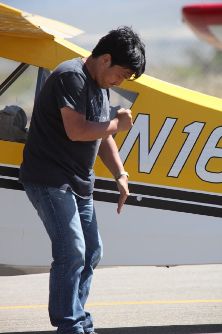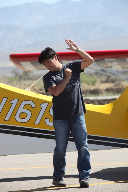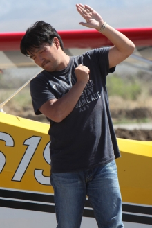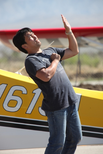 大会前日の芦田は、不安と格闘していた。ノウン(※ルール参照)は決められた10のマニューバー(操縦、曲技)を順番にこなしていくのだが、機体が変わったせいか、そのひとつハンマーヘッド※がどうしてもうまくいかないのである。配点が高いマニューバーだけに、このままでは上位進出も危うい。芦田は今回現地でコーチとして選んだ、エアロバティックスでは最高の「アンリミテッド」レベルの実力を持つタイ・フリスビーにアドバイスを求めた。
