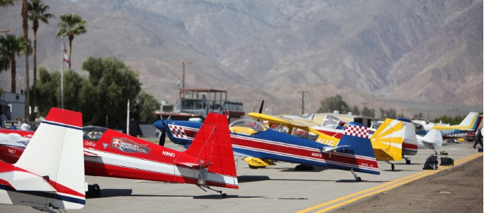 ボレーゴの大会会場は、ビビッドな配色を施した無数のアクロバット専用機が並ぶ。