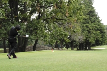 アウトの1番、主催者であるオーデマ ピゲ ジャパンの麦野豪さんの豪快なショットに「ナイスショット!」と、仲間から掛け声が掛かります。続くプレーヤーもフェアウェイのど真ん中をキ-プするショットで、最高のスタ-トを切りました。「こんな素晴らしい名門クラブでプレ-できることに感謝して回ろう」と、気合いを入れるプレ-ヤーも。前回、第2戦の成田で思わぬライバルに優勝をさらわれ、準優勝に終わった澤田久さんは、今回は手堅いゴルフでスコアをまとめて行きます。また、第1戦で優勝、第2戦では47位ながら、年間ポイントランキングで首位に立つ網野保さんも粘りのゴルフを続けました。年間総合優勝に向けて落とせないこの第3戦は、これまでの大会の中でも最も激戦となりつつ、午後3時にすべてのラウンドが終了したのです。