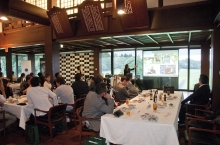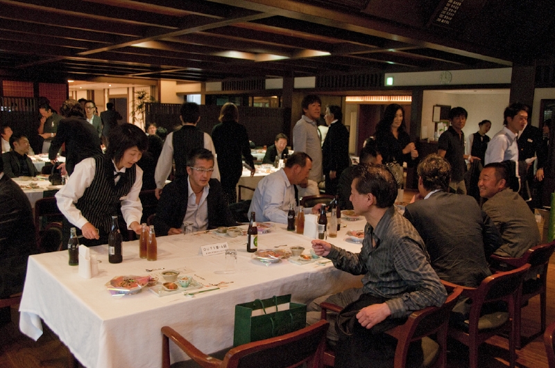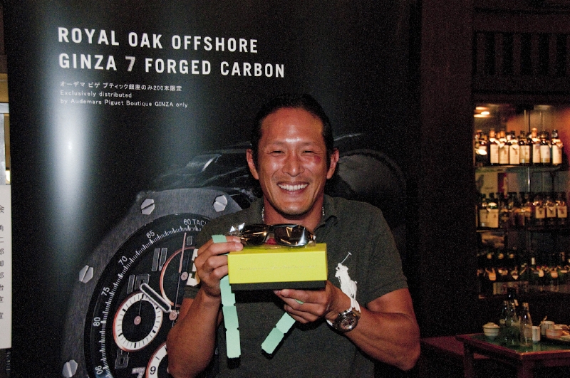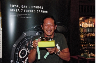 午後4時、プレイヤ-たちがパ-ティ-会場のダイニングフロアに集合しました。乾杯の発声は、オ-デマ ピゲ ジャパンの麦野さん。